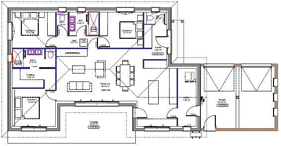 Ce modèle contemporain vous offre la possibilité de mettre 3 ou 4 chambres.